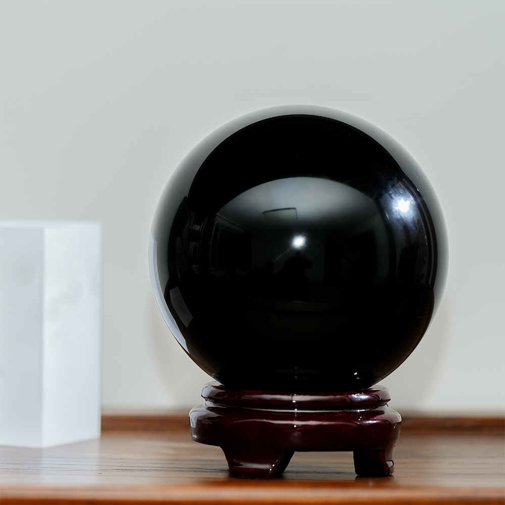 Large Black Crystal Ball – Polished Obsidian Sphere for Protection